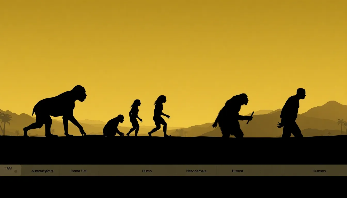 Key milestones mark the path from early primates to modern humans. Australopithecus afarensis is notable for its bipedalism, which laid the foundation for walking upright. Homo habilis followed, showcasing increased brain size and the development of tools. Neanderthals, alongside modern humans, shared advanced social structures and skills, creating significant cultural connections. These stages emphasize the dynamic nature of evolution as it responds to environmental pressures.